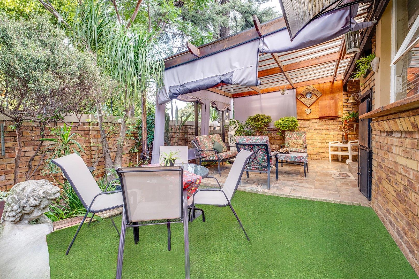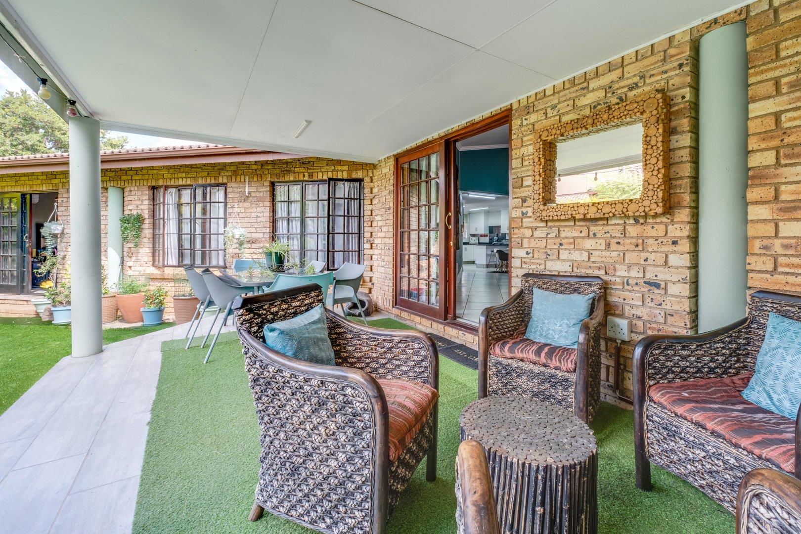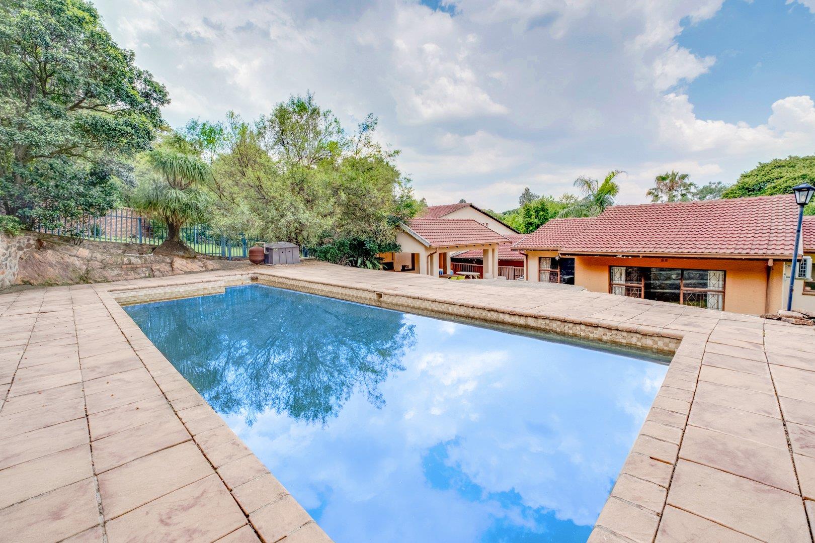The patio overlooks the immaculate garden with a sparkling pool, while a boma braai area is tucked into a cozy corner,...